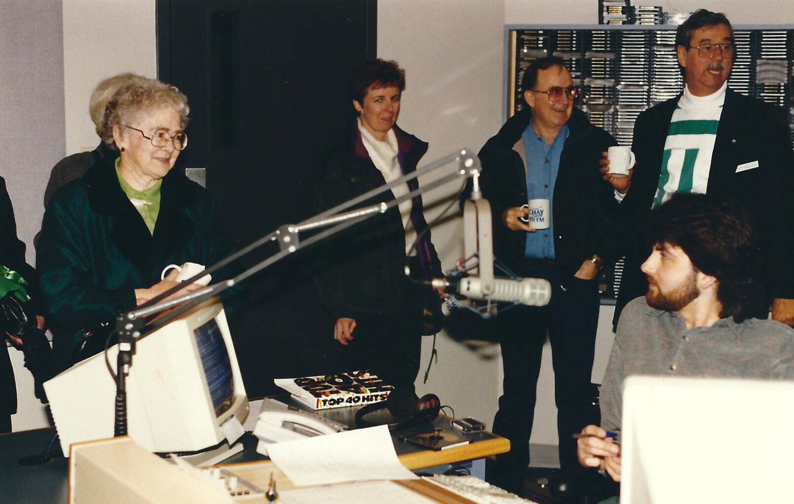 CHAY-FM’s George Jonescu and Doug Moorhouse meet in the main control room with guests at a CHAY-FM Open House