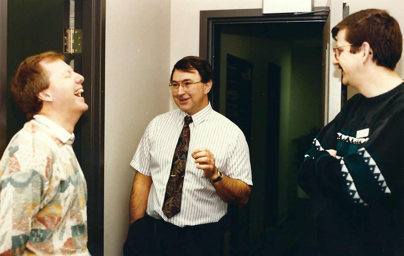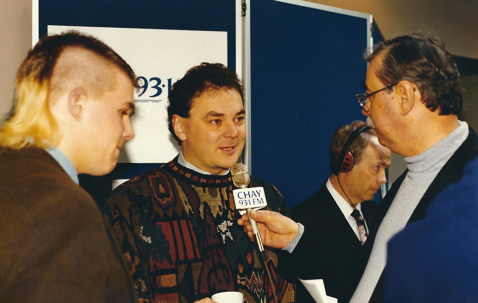 Canadian curler and Olympic Champion Russ Howard with CHAY-FM Sports Director John Crawley and News Director Martin Vanderwoude.